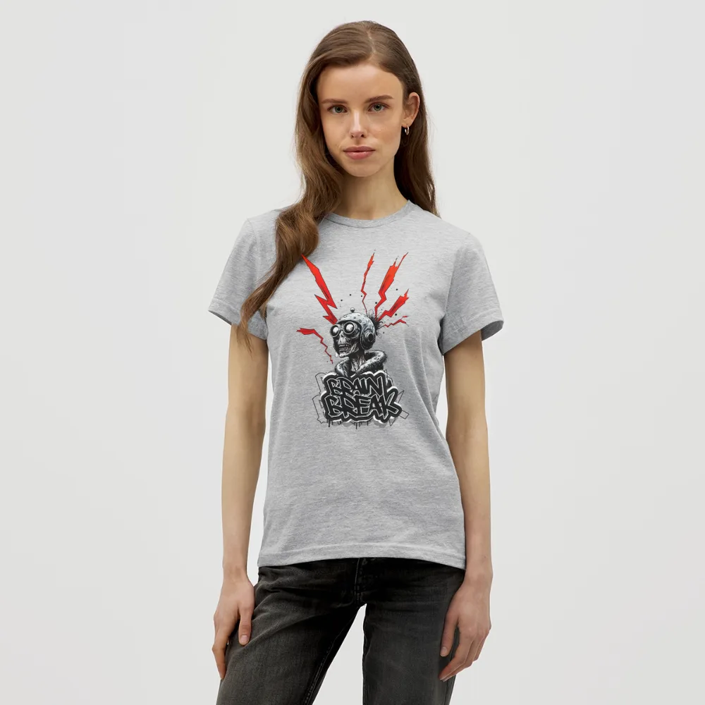 Mach dein Outfit zum Statement – mit dem „Brain Break“ T-Shirt von EnrolDesign! Das auffällige Skull-Motiv mit roten Blitzen und Graffiti-Schriftzug steht für Energie, Rebellion und Kreativität. Ideal für Streetstyle-Fans, Gamer und alle, die auffallen wollen. Hochwertiger Druck, bequemer Schnitt, maximaler Style!