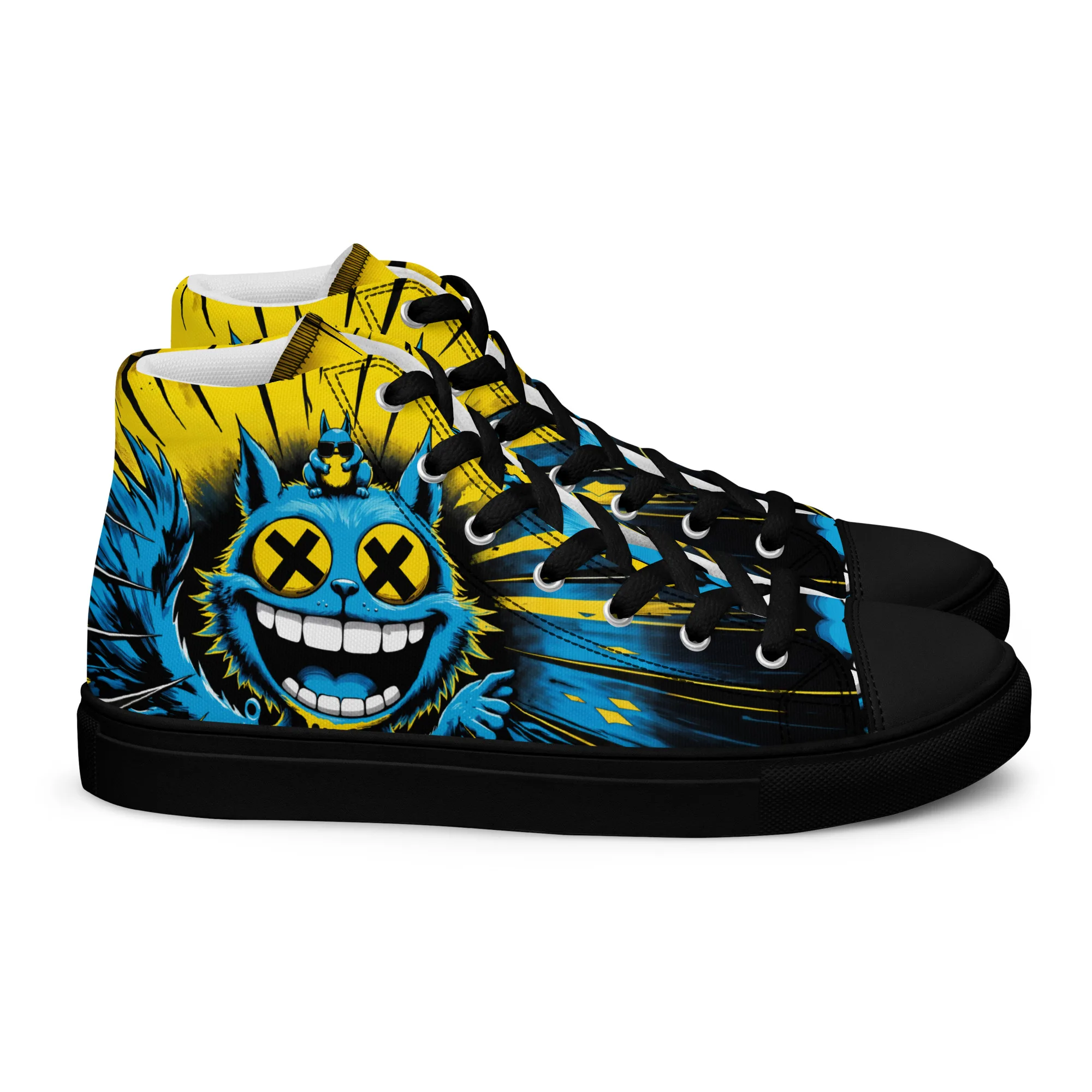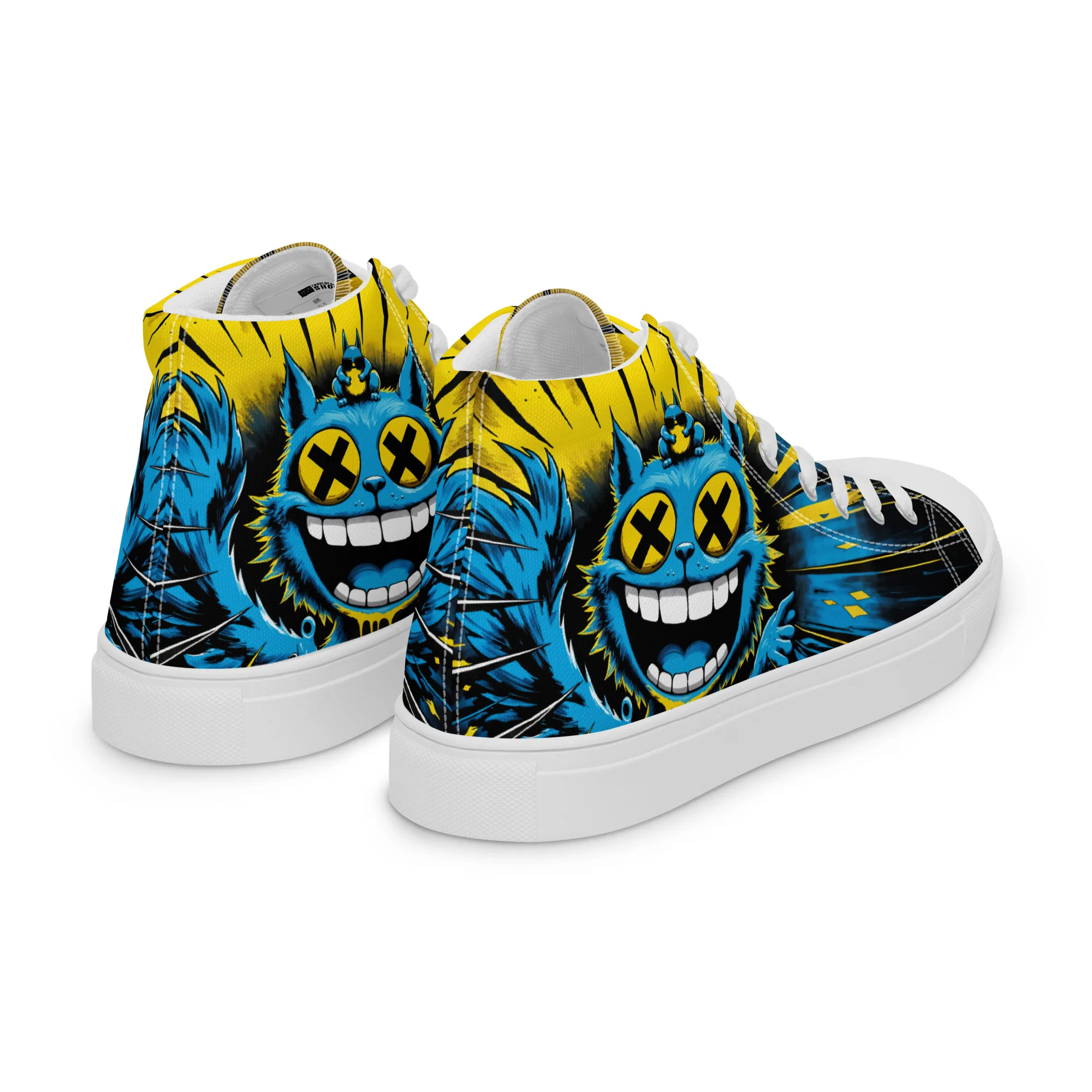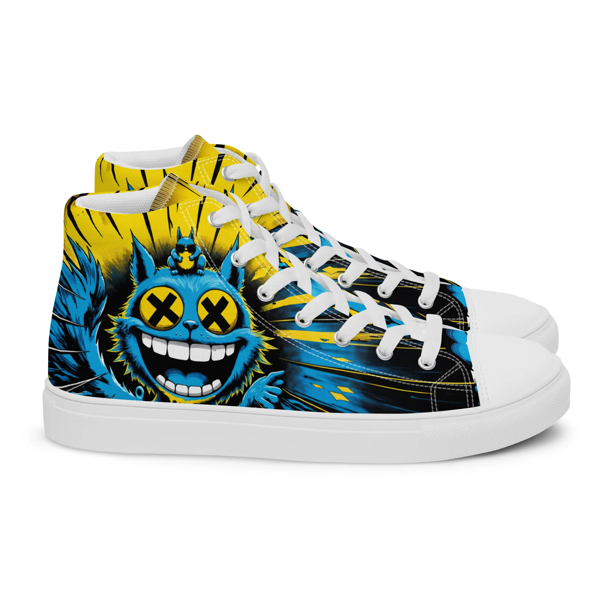 Bunt, verrückt und ein echter Hingucker: Die „Crazy Cat“ Damen High-Top Sneaker zeigen eine wilde Neonkatze im Comic-Style. Bequem, robust und stylisch – perfekt für Streetwear, Festivals und alle, die ein mutiges Fashion-Statement lieben.