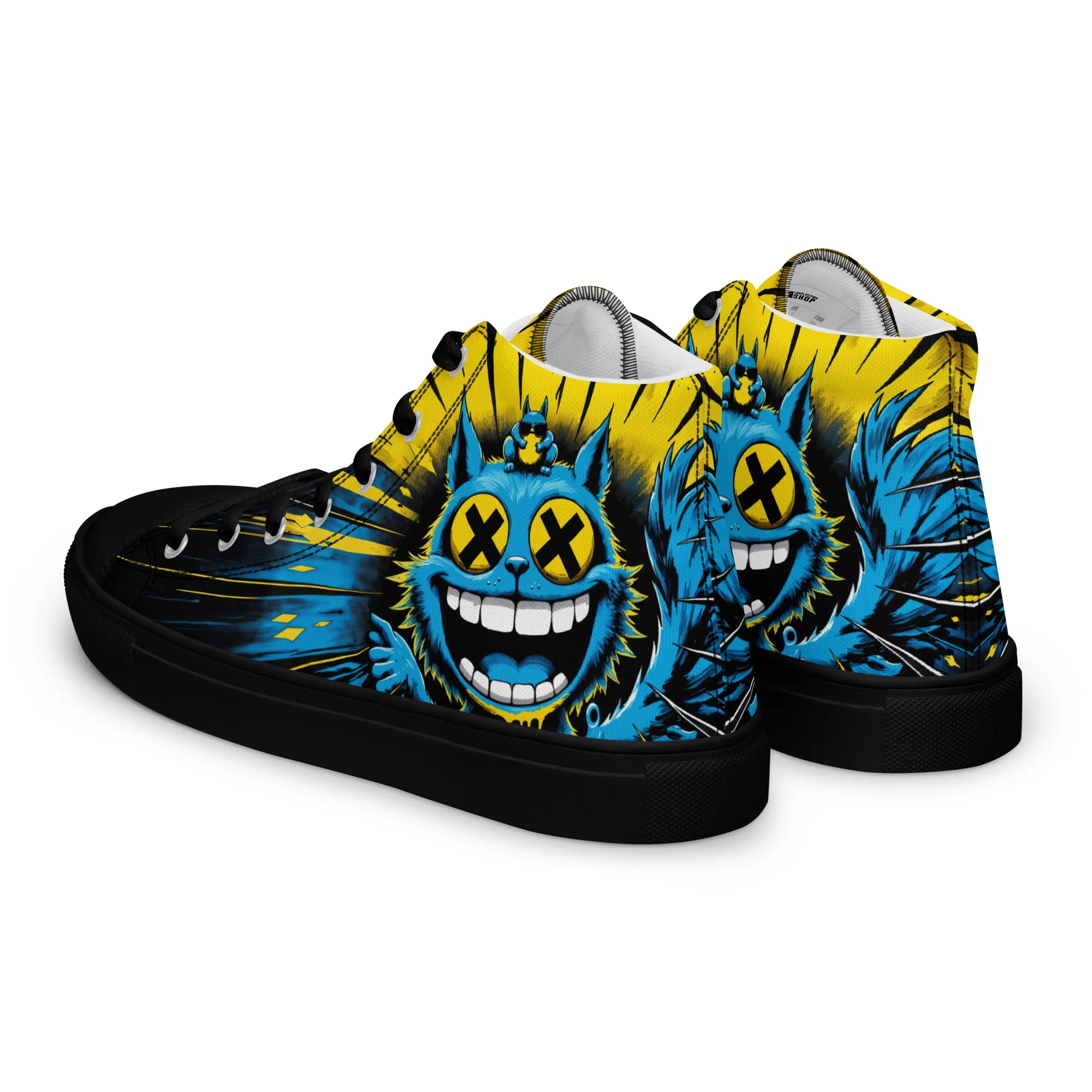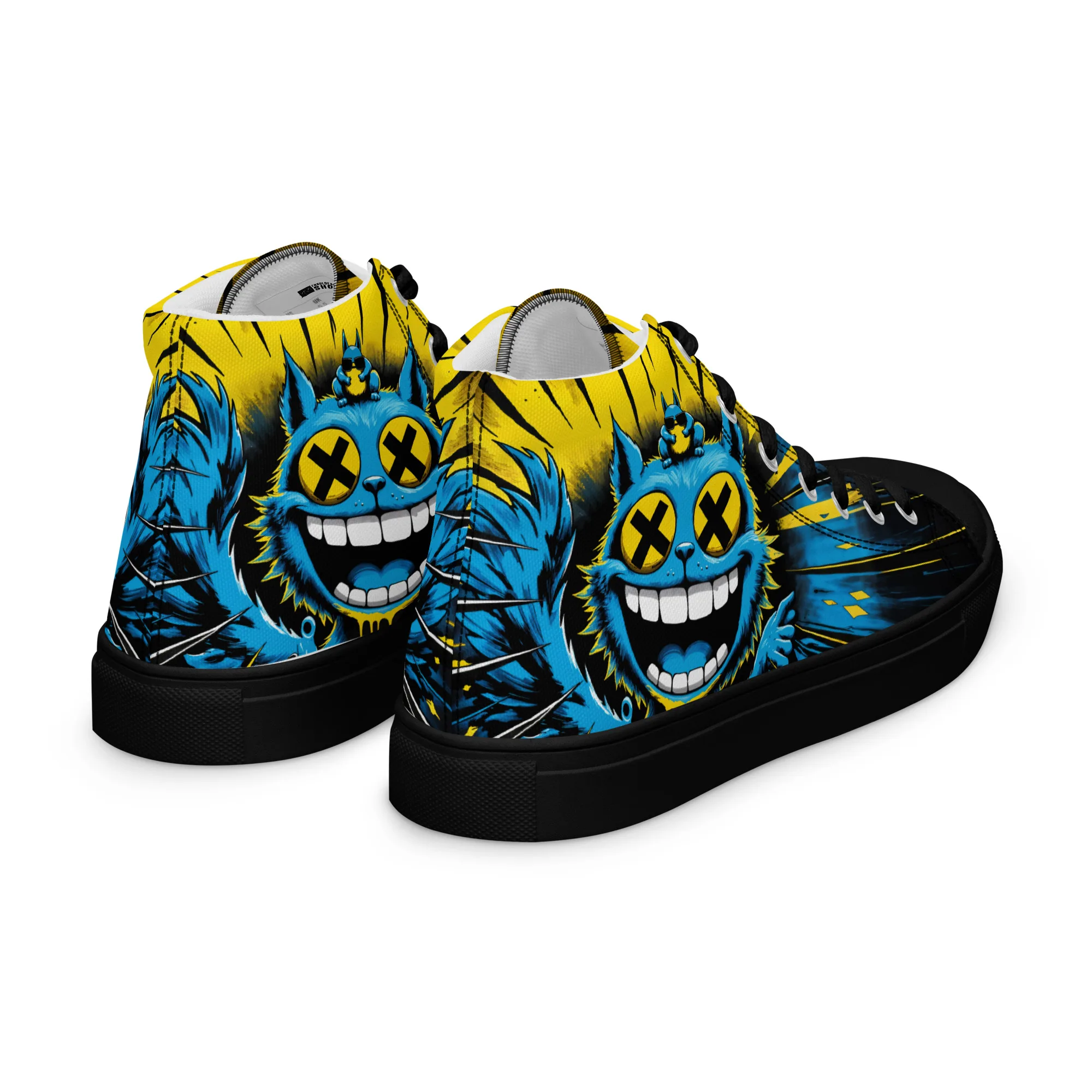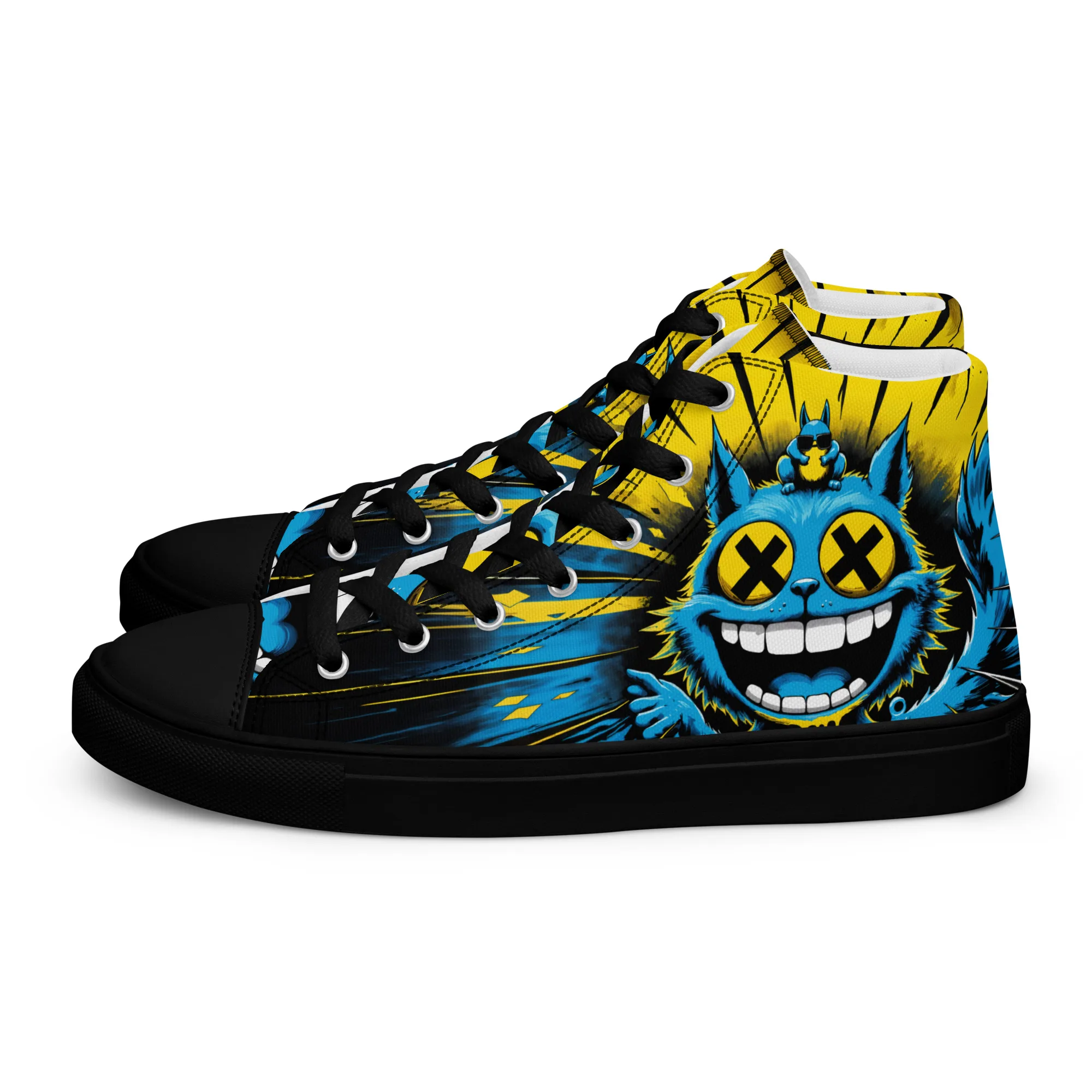 Bunt, verrückt und ein echter Hingucker: Die „Crazy Cat“ Damen High-Top Sneaker zeigen eine wilde Neonkatze im Comic-Style. Bequem, robust und stylisch – perfekt für Streetwear, Festivals und alle, die ein mutiges Fashion-Statement lieben.