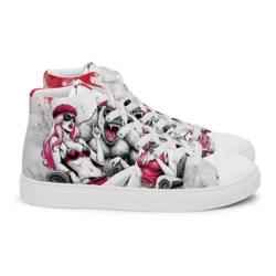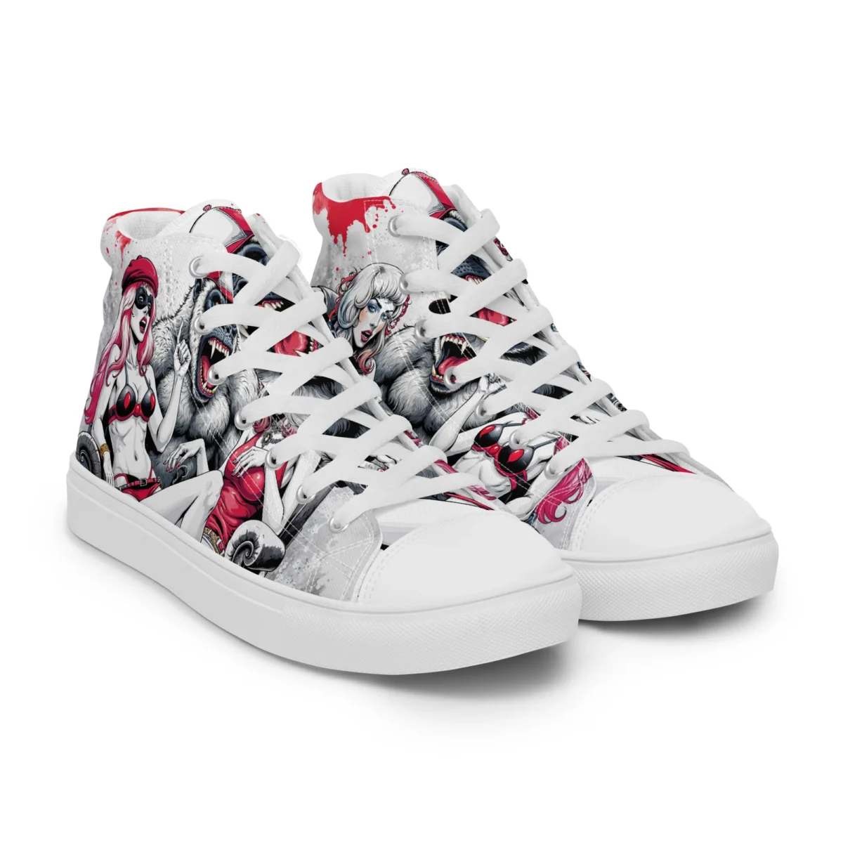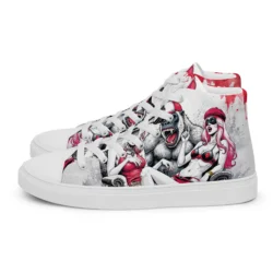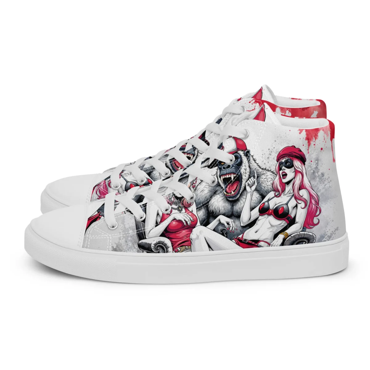 Provokant, wild und auffällig: Die „Gorilla & Girls“ Damen High-Top Sneaker kombinieren ein detailreiches Gorilla-Artwork mit frechem Pin-Up-Style. Robuste Canvas-Schuhe mit bequemer Sohle – perfekt für Festivals, Streetwear und alle, die ein starkes Fashion-Statement setzen wollen.