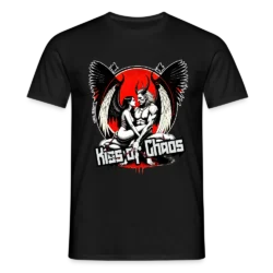 Verführung trifft Finsternis – das „Kiss of Chaos“ Herren T-Shirt von EnrolDesign vereint Engel und Dämon in einem intensiven Artwork voller Energie und Leidenschaft.