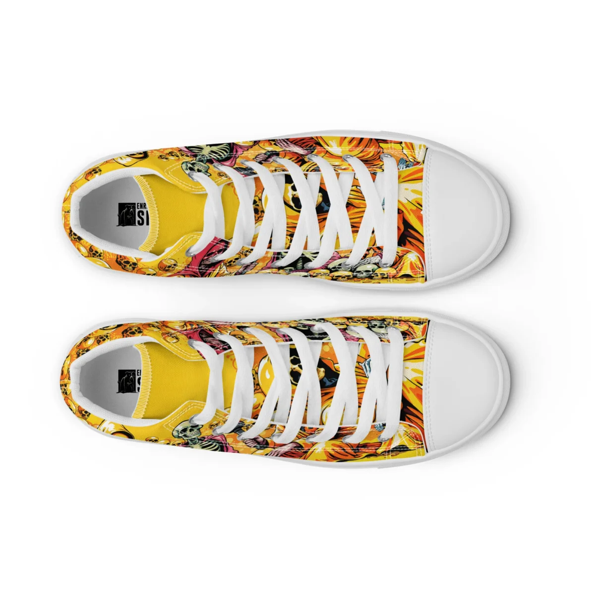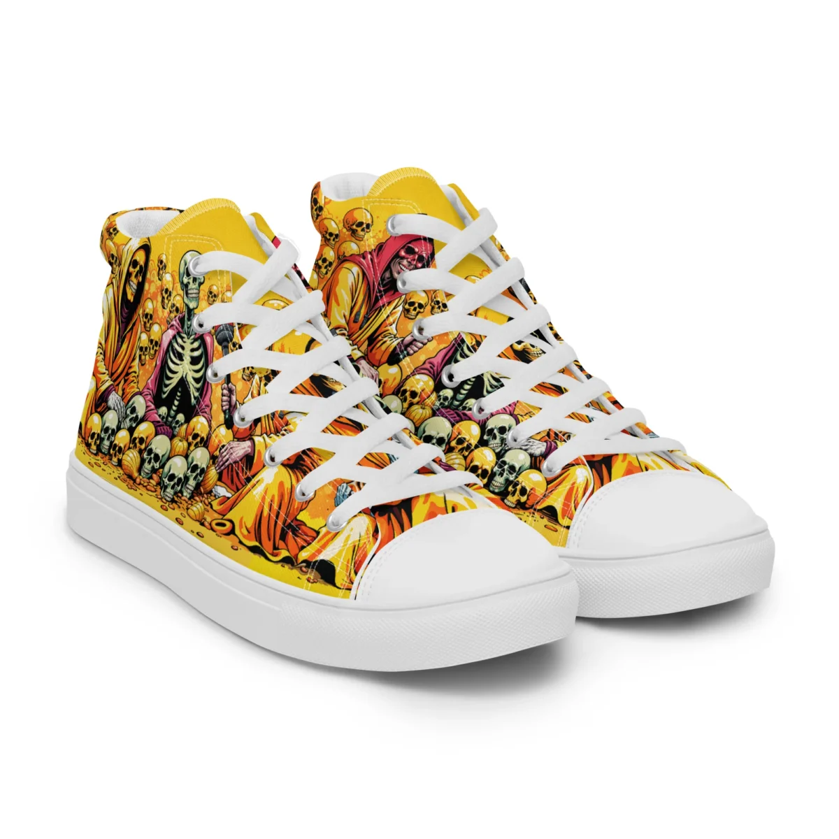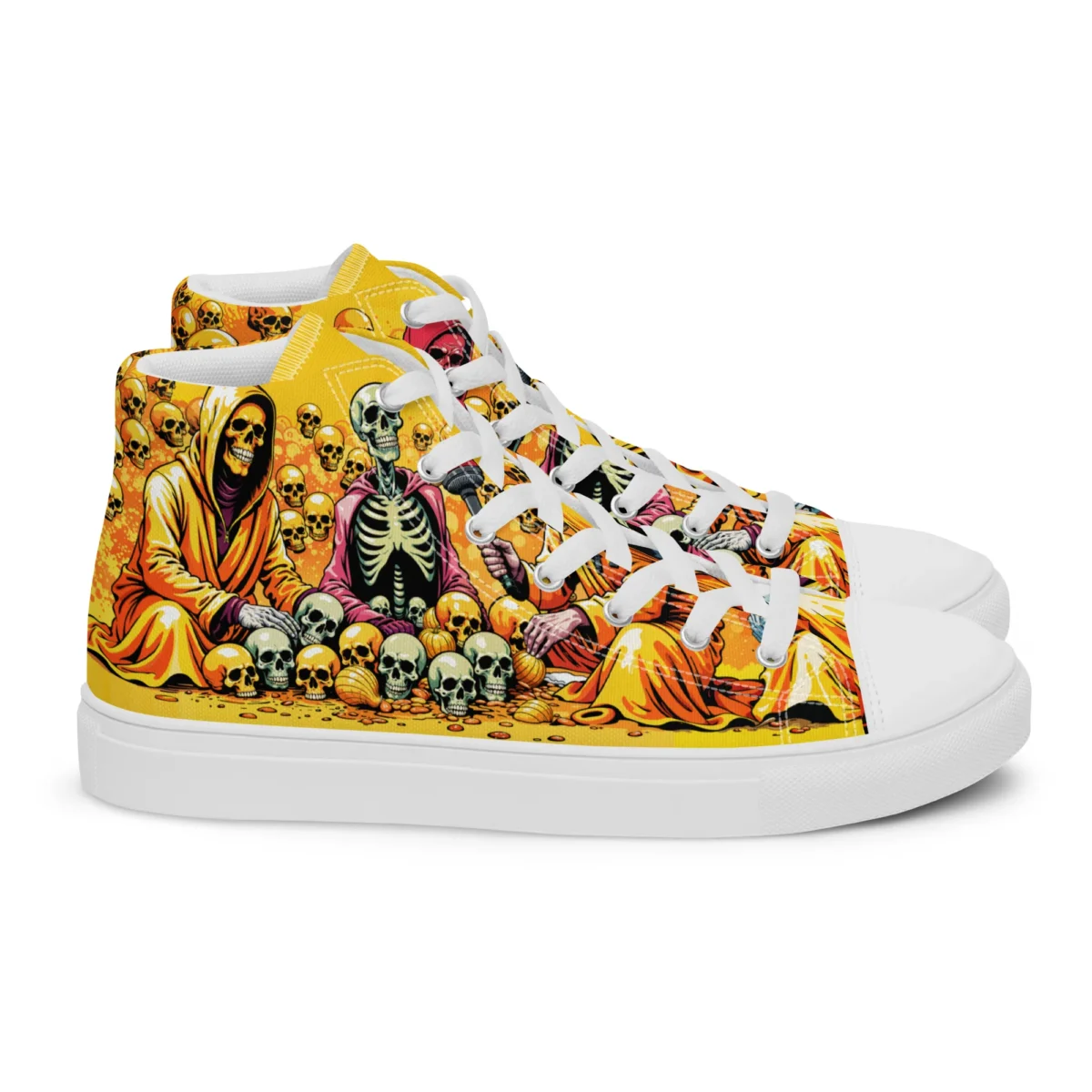 Die „Skull Monks“ Herren High-Top Sneaker kombinieren auffälliges Totenkopf-Design mit Streetwear-Style. Mit ihrem gelben Hintergrund und den düsteren Mönchs-Skeletten sind sie der ultimative Hingucker – perfekt für Festivals, Urban Fashion und alle, die ein starkes Statement setzen wollen.